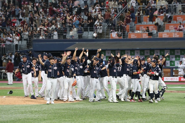 The 2019 professional baseball, which lasted about seven months, ended with Doosan's victory on Wednesday. Three of the four games in the Korean Series (KS) were completed in nine or 10 consecutive innings, but the last thing I laughed at was the Doosan Bears, who ended the series with four straight wins.